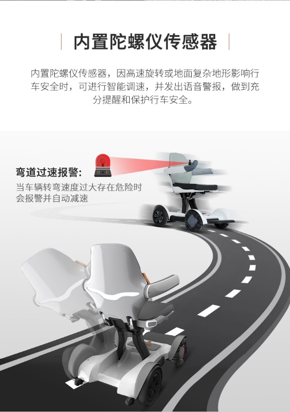 這款有西安吉美康康復(fù)器械租售總經(jīng)銷的邦邦車,具有超高的顏值,流線型的車身,黑白金色強(qiáng)烈對(duì)比的視覺效果,沒有任何裸露在外面的線束,具有視覺沖擊感的輪胎,一下把其他電動(dòng)輪椅能甩好幾條街。 帶著對(duì)這款號(hào)稱輪椅屆的特斯拉好奇,我們拜訪了位于西安市北大街332號(hào)誠禮大廈425室的“吉美康智能康復(fù)家居體驗(yàn)館”,親眼見識(shí)下。 突出的安全性 坡道自動(dòng)剎車功能,上坡時(shí)松開控制器,自動(dòng)剎車不溜坡。 作為一款電動(dòng)輪椅,邦邦車具備其他電動(dòng)輪椅不具備的安全配置。全車配備3個(gè)陀螺儀,隨時(shí)檢測(cè)車身平衡動(dòng)態(tài),防止快速過彎傾角過大,可以實(shí)現(xiàn)自動(dòng)減速。