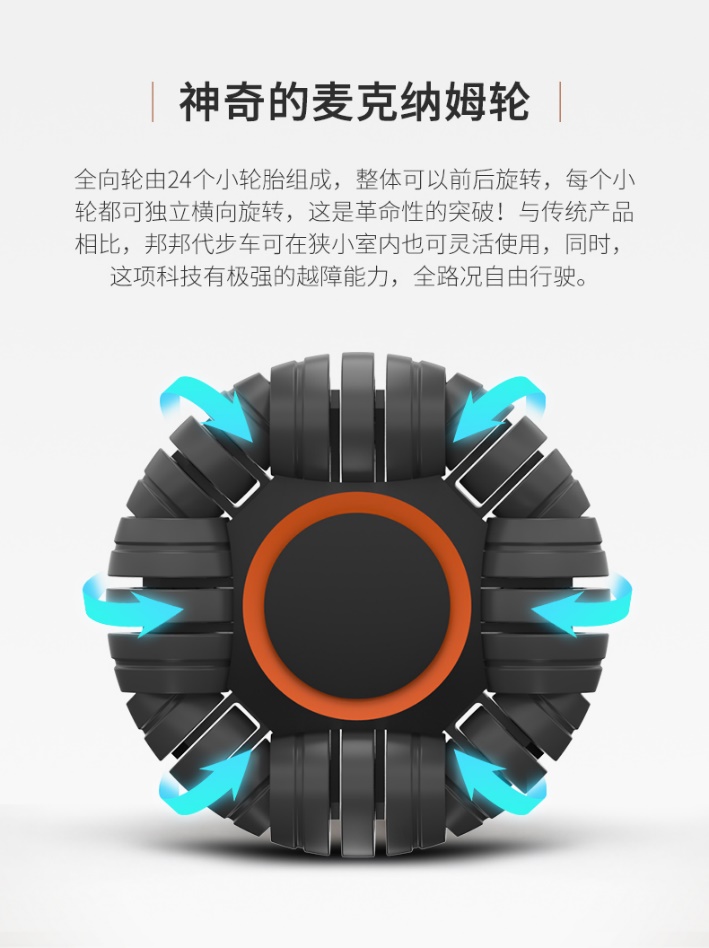 神奇的麥克納姆全向輪 配備前所未見的麥克納姆全向輪,具有突出的靈活性和越障能力。